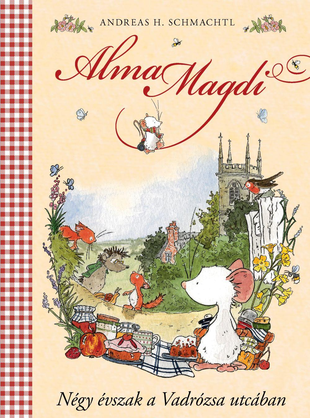 Akik már eddig is rajongtak Alma Magdiért, a bodzavirágszínű kisegérért, most a rövid füzetek helyett egy egész kötetre való történetben követhetik a kalandjait! Ahogy a kötet alcíme is ígéri, négy évszak eseményei tárulnak elénk. Különlegesség, hogy maga a szerző készítette a mesék illusztrációit.