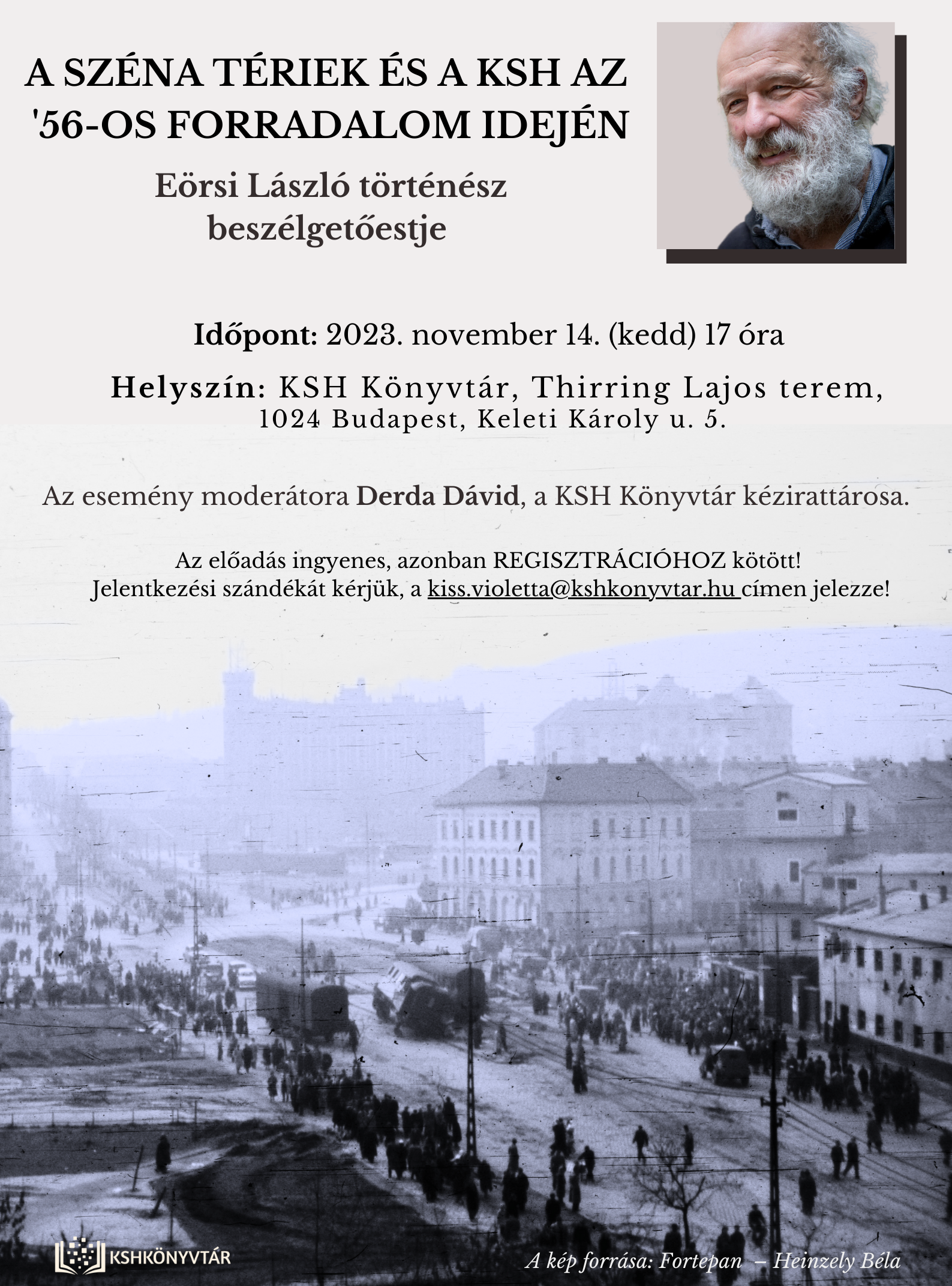 Sok szeretettel várjuk az érdeklődőket Eörsi László történész A Széna tériek és a KSH az ’56-os forradalom idejéncímű beszélgetőestjére 2023. november 14-én (kedd) 17 órától!