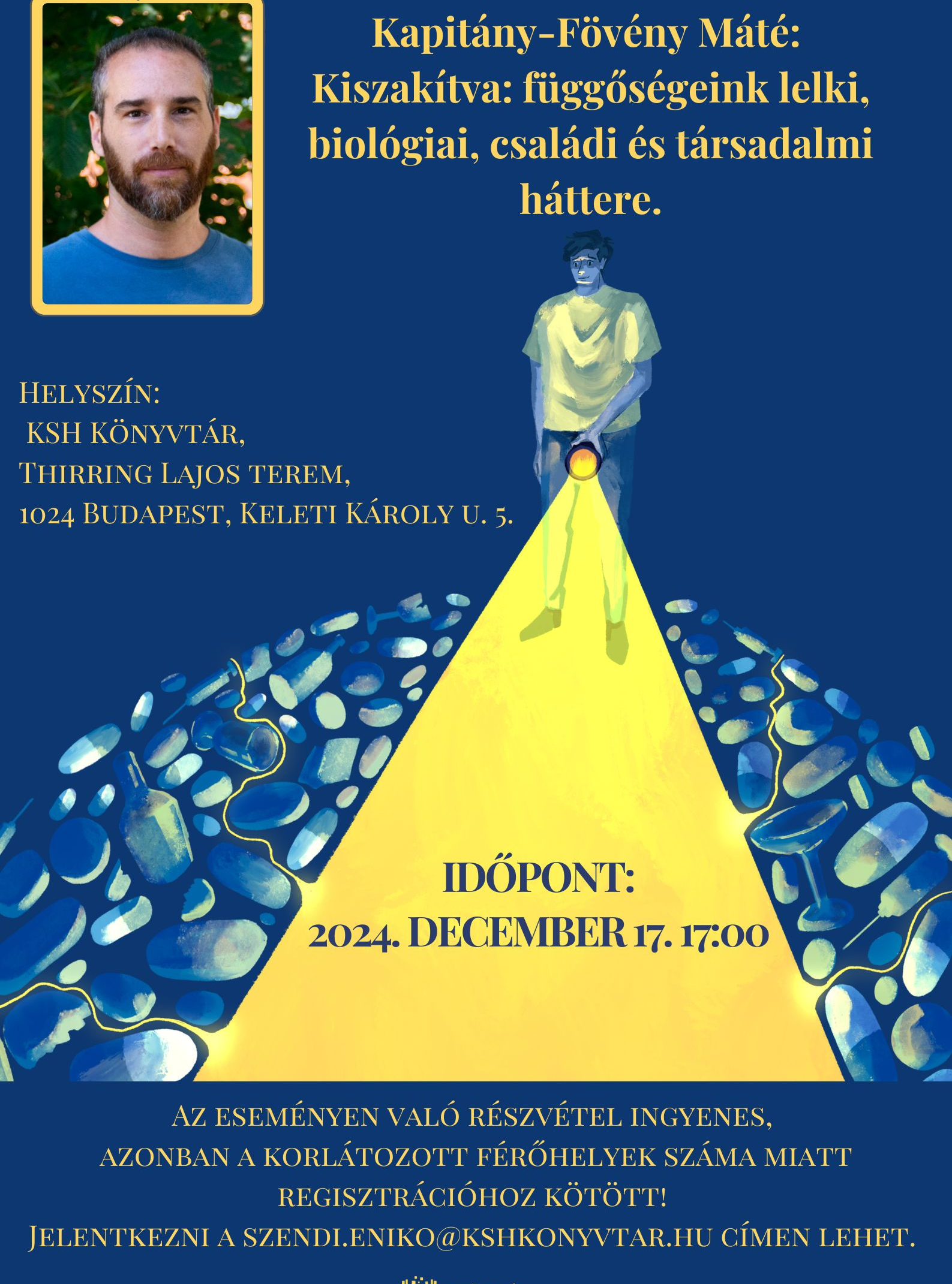Az előadást Kapitány-Fövény Máté fogja tartani, Kiszakítva: függőségeink lelki, biológiai, családi és társadalmi háttere címmel. Az eseményen való részvétel ingyenes, azonban a korlátozott férőhelyek száma miatt REGISZTRÁCIÓHOZ kötött! Jelentkezni a #SSS#PGEgaHJlZj0ibWFpbHRvOnN6ZW5kaS5lbmlrb0Brc2hrb255dnRhci5odSI+c3plbmRpLmVuaWtvQGtzaGtvbnl2dGFyLmh1PC9hPg==#EEE# címen lehet.