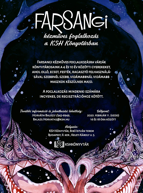 2020. február 11-én (kedd) 16 és 18 óra között szeretettel várjuk a 4 és 10 év közötti gyermekeket és szüleiket, nagyszüleiket farsangi kézműves foglalkozásunkon!
