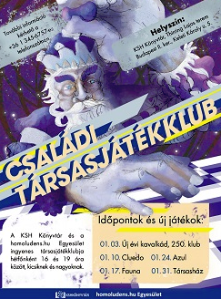 A KSH Könyvtár és a homolundens.hu Egyesület ingyenes társasjáték klubja hétfőnként 16 és 19 óra között, kicsiknek és nagyoknak.