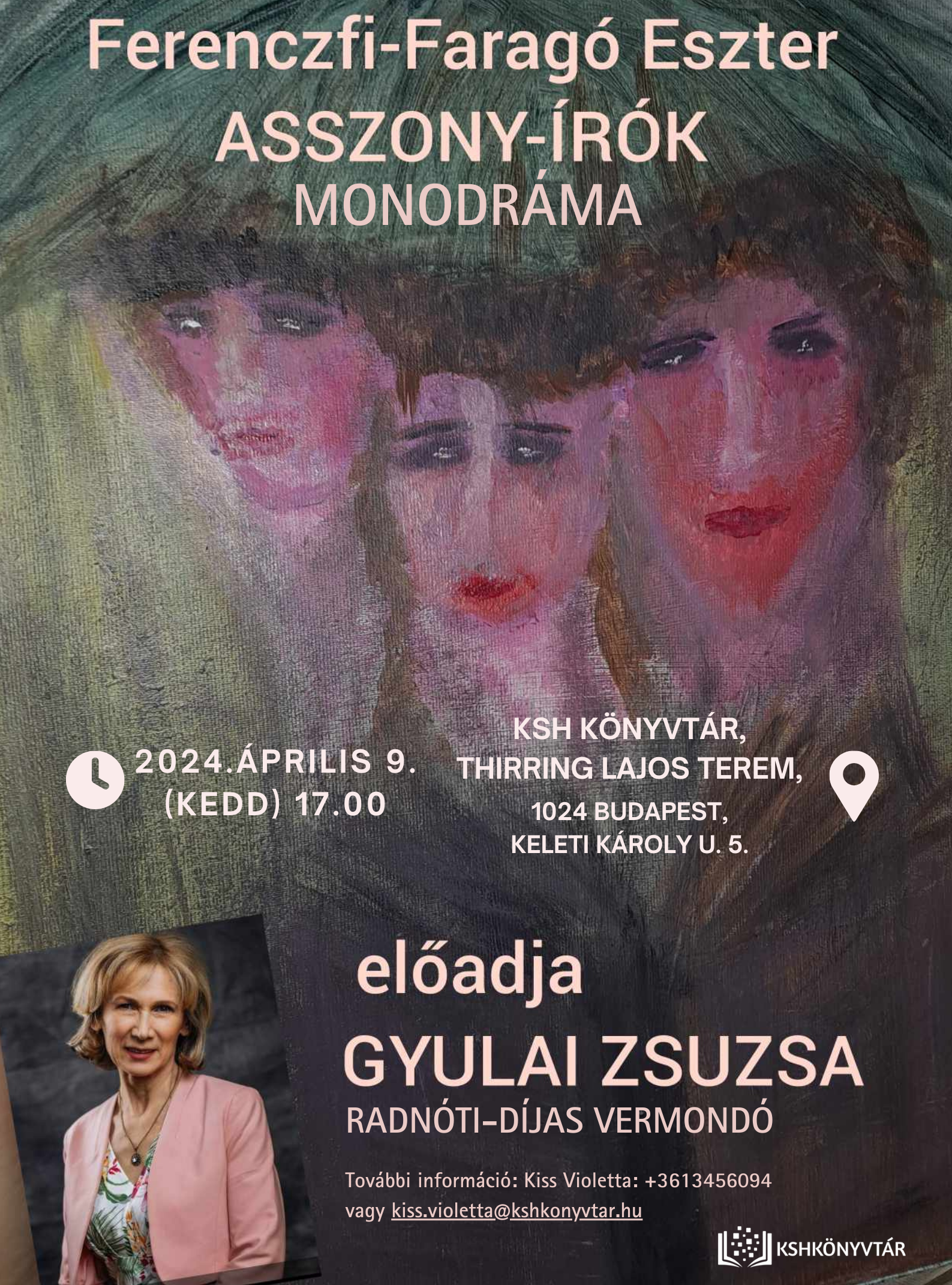 órától várunk minden érdeklődőt Ferenczfi-Faragó Eszter Asszony-írók című