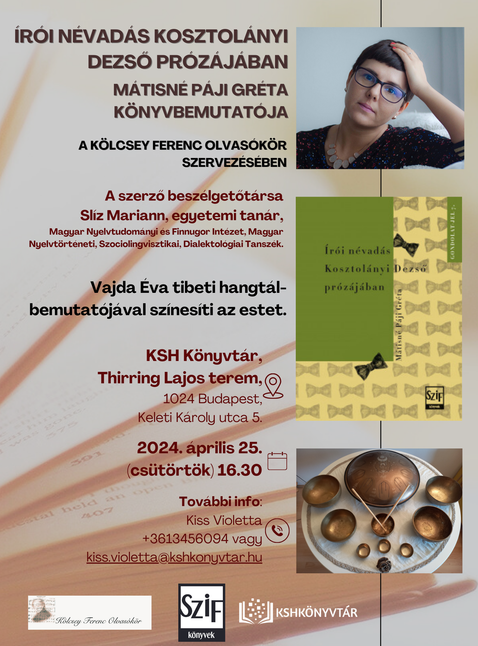 könyvbemutatójára várjuk az érdeklődőket a Kölcsey Ferenc Olvasókör