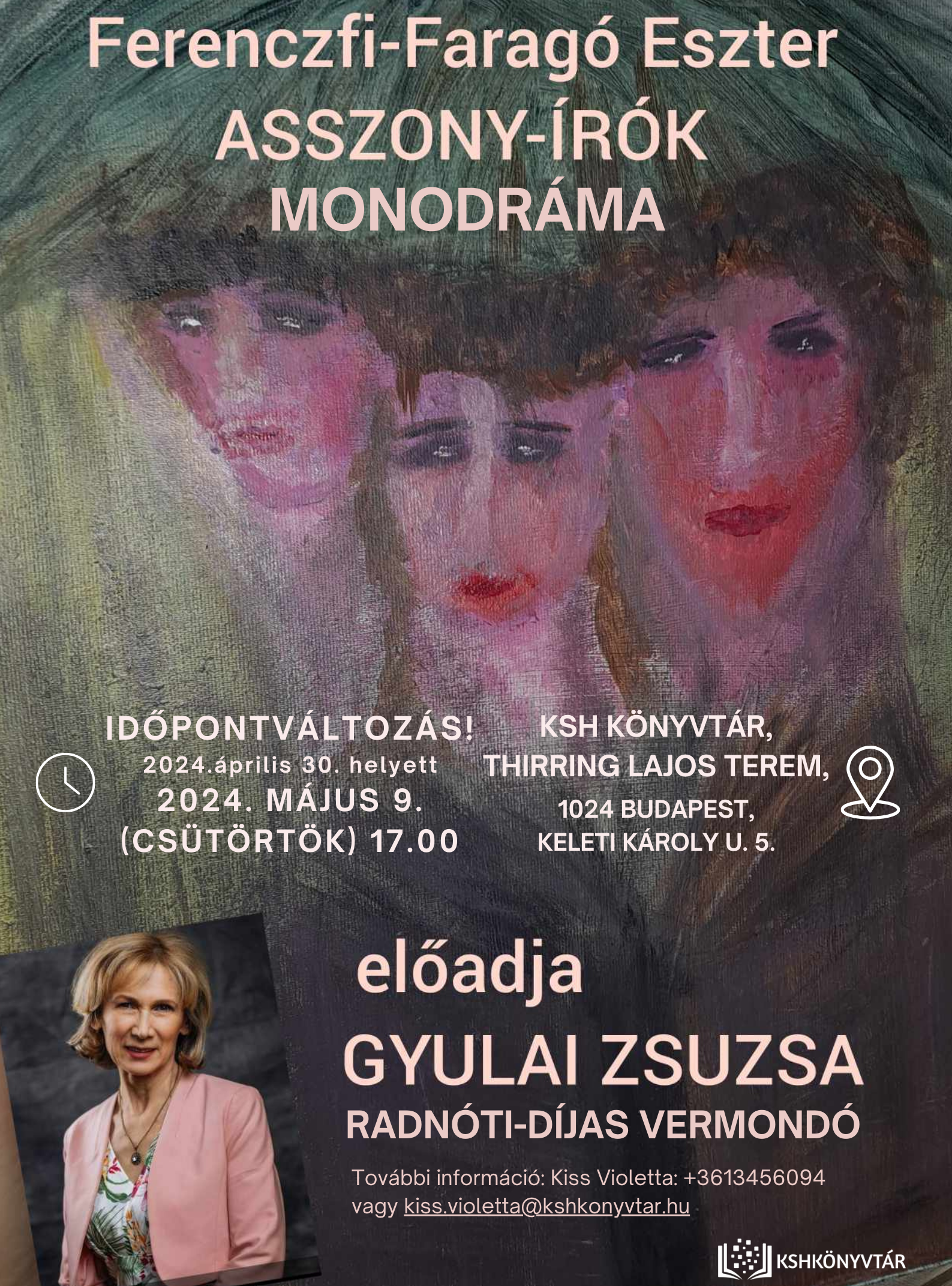 17 órától várunk minden érdeklődőt Ferenczfi-Faragó Eszter Asszony-írók