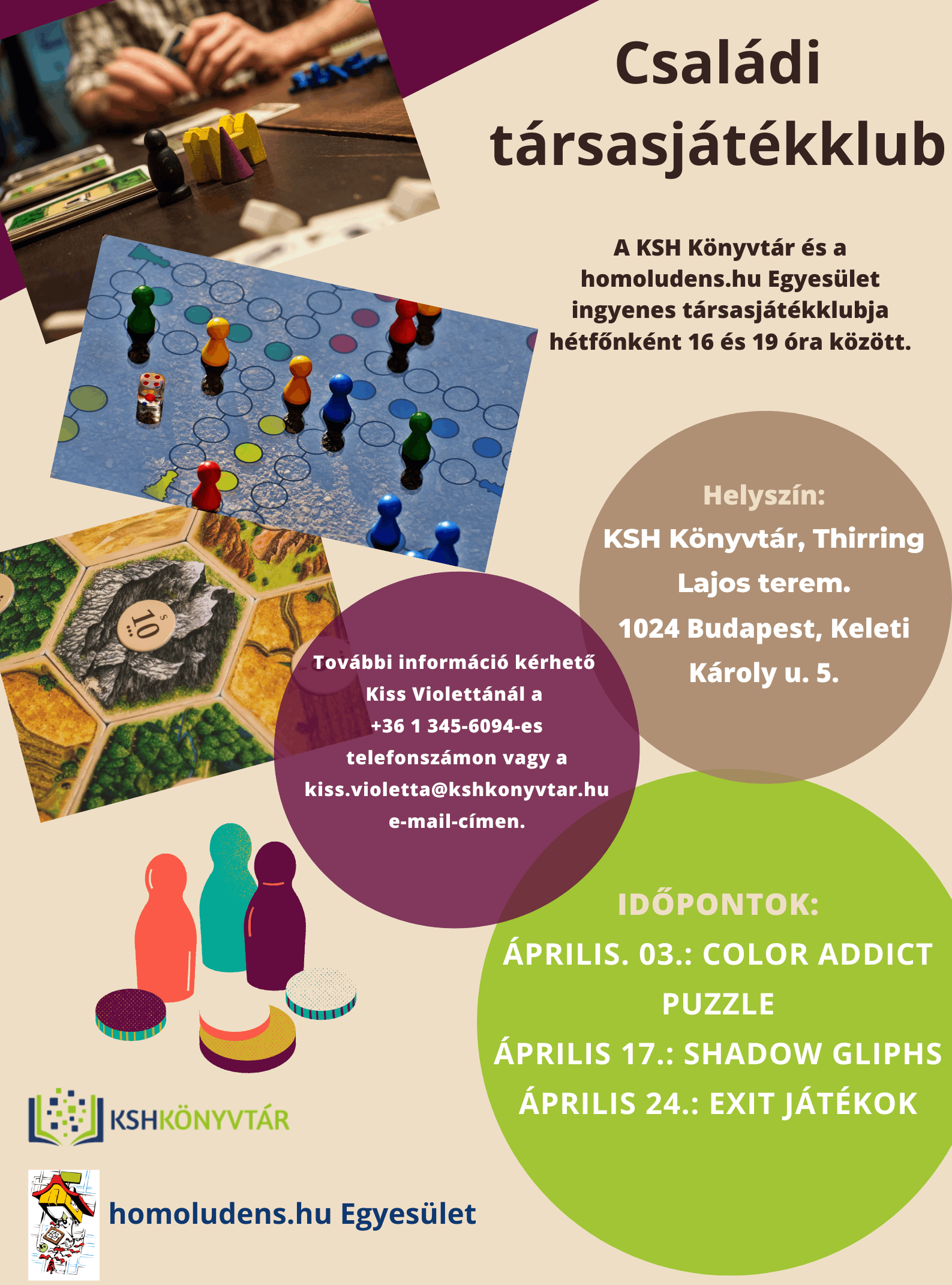 Családi társasjátékklubunk márciusban is sok szeretettel várja a kikapcsolódni vágyókat hétfőnként 16.00 és 19.00 óra között!