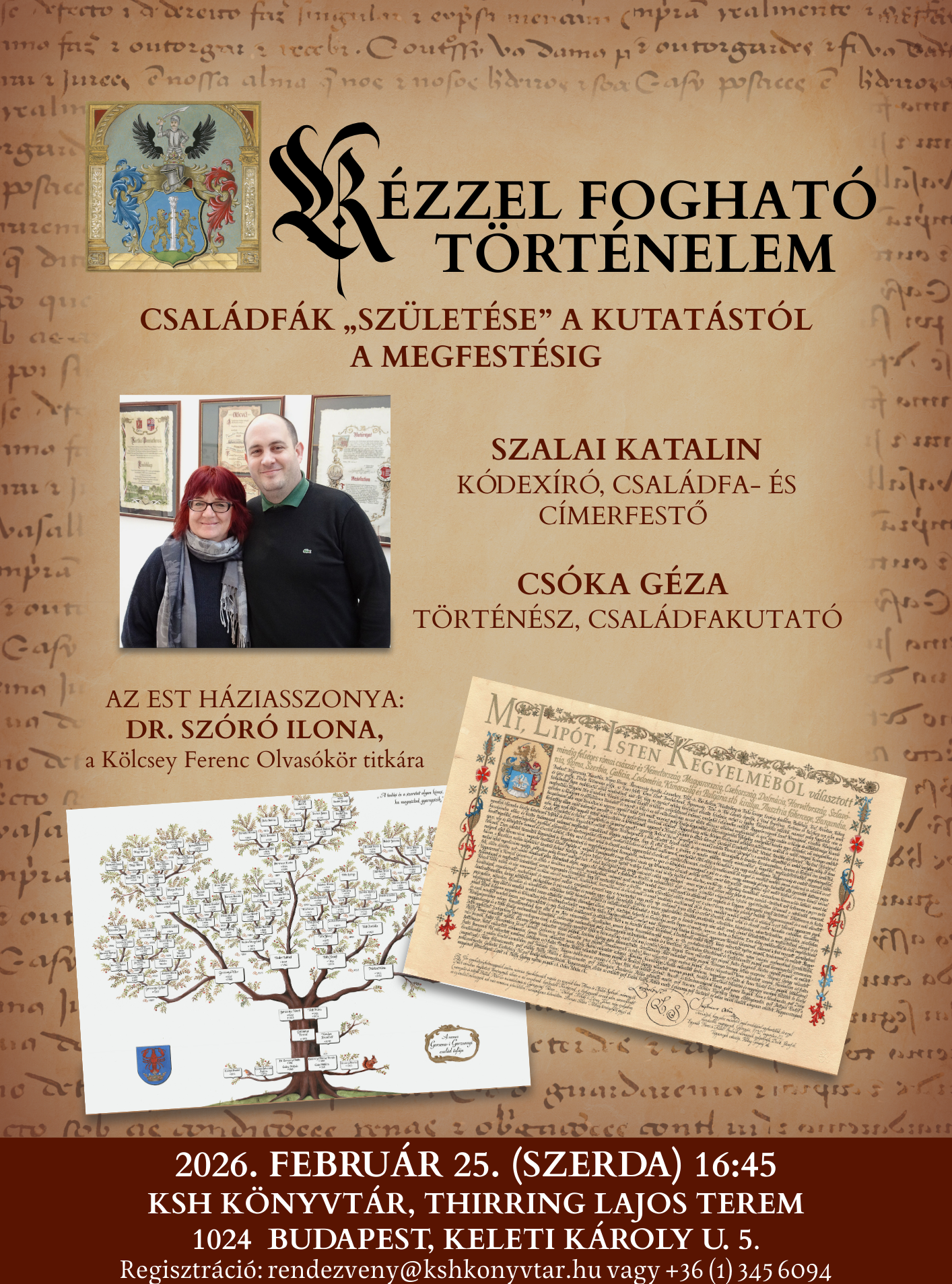 Sok szeretettel vár a KSH Könyvtár és a Kölcsey Ferenc Olvasókör minden érdeklődőt egy különleges eseményre, ahol a családfakutatás tudománya találkozik a művészi megjelenítés szépségével.