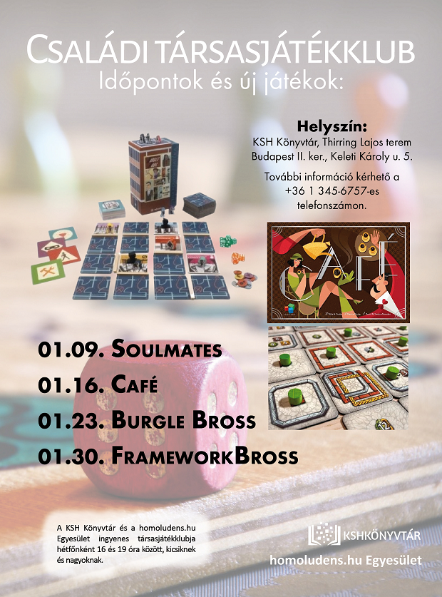 A KSH Könyvtár és a homoludens.hu Egyesület közös rendezésű családi társasjátékklubja november 21-től ismét várja az érdeklődő kicsiket és nagyokat hétfőnként 16 és 19 óra között.