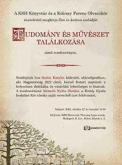 A KSH Könyvtár és a Kölcsey Ferenc Olvasókor tisztelettel meghívja Önt és kedves családját a Tudomány és művészet találkozása című rendezvényre.