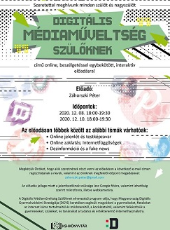 Szeretettel várunk minden kedves érdeklődőt az "Digitális médiaműveltség szülőknek" című, beszélgetéssel egybekötött online előadásra!