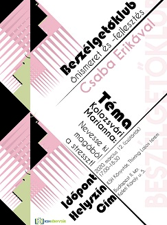 2020. március 12-én (csütörtök) 17 órától a beszélgetőklubunk vendége Kolozsvári Marianna, aki Nevesse ki magából a stresszt! címmel tart előadást.