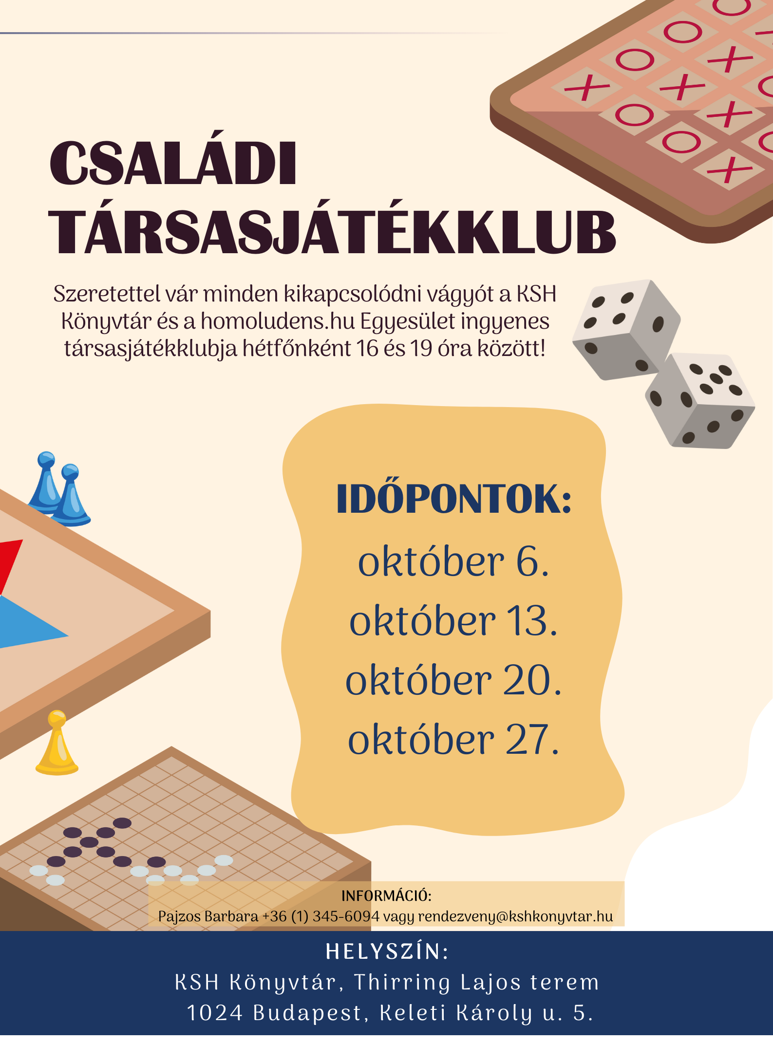 Ismét várja az érdeklődő kicsiket és nagyokat a KSH Könyvtár és a homoludens.hu Egyesület közös rendezésű családi társasjátékklubja hétfőnként 16 és 19 óra között!