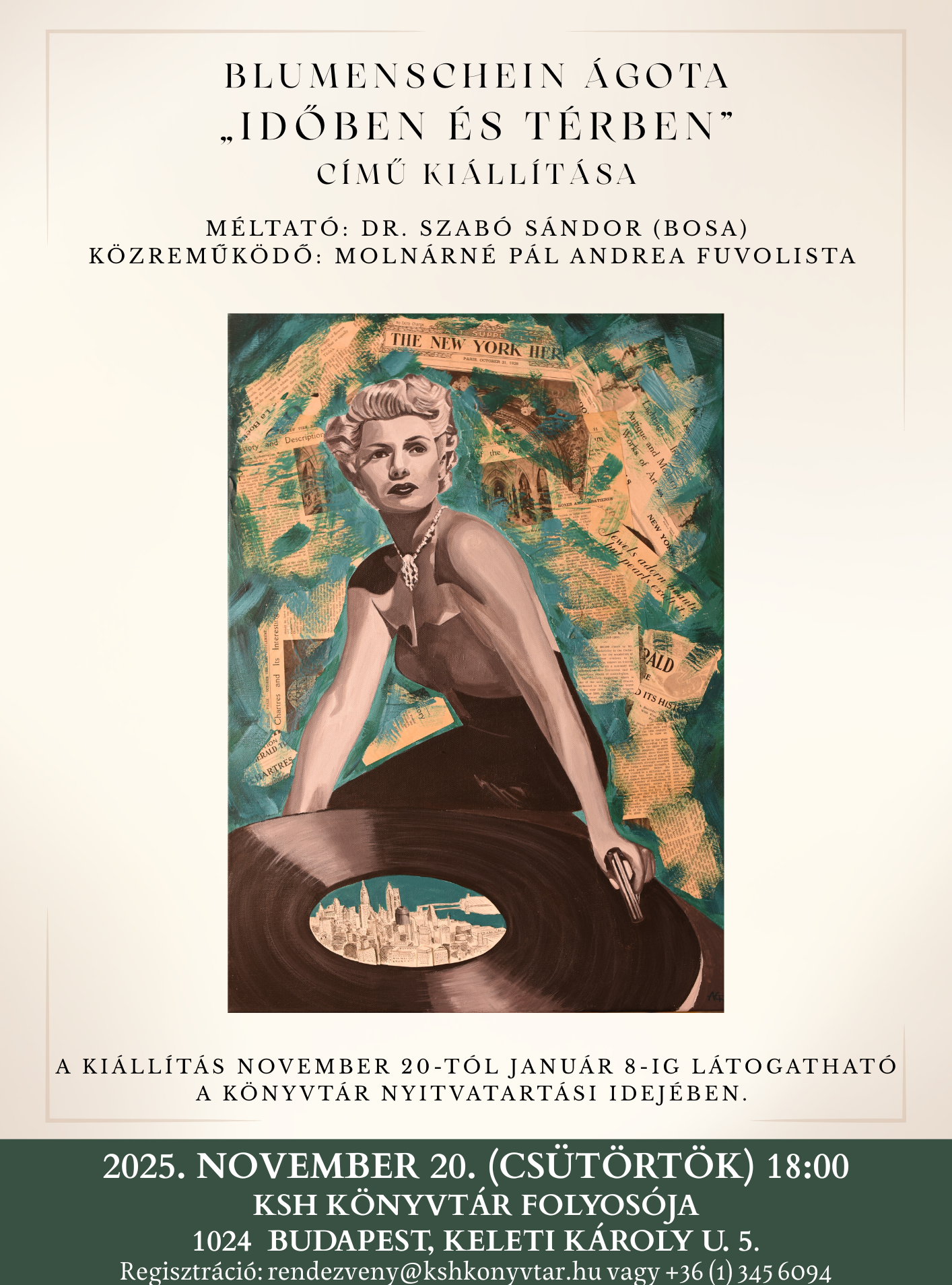 A KSH Könyvtár szeretettel meghívja látogatóit Blumenschein Ágota "Időben és térben" című kiállításának megnyitójára, amely november 20-án 18 órától kerül megrendezésre.