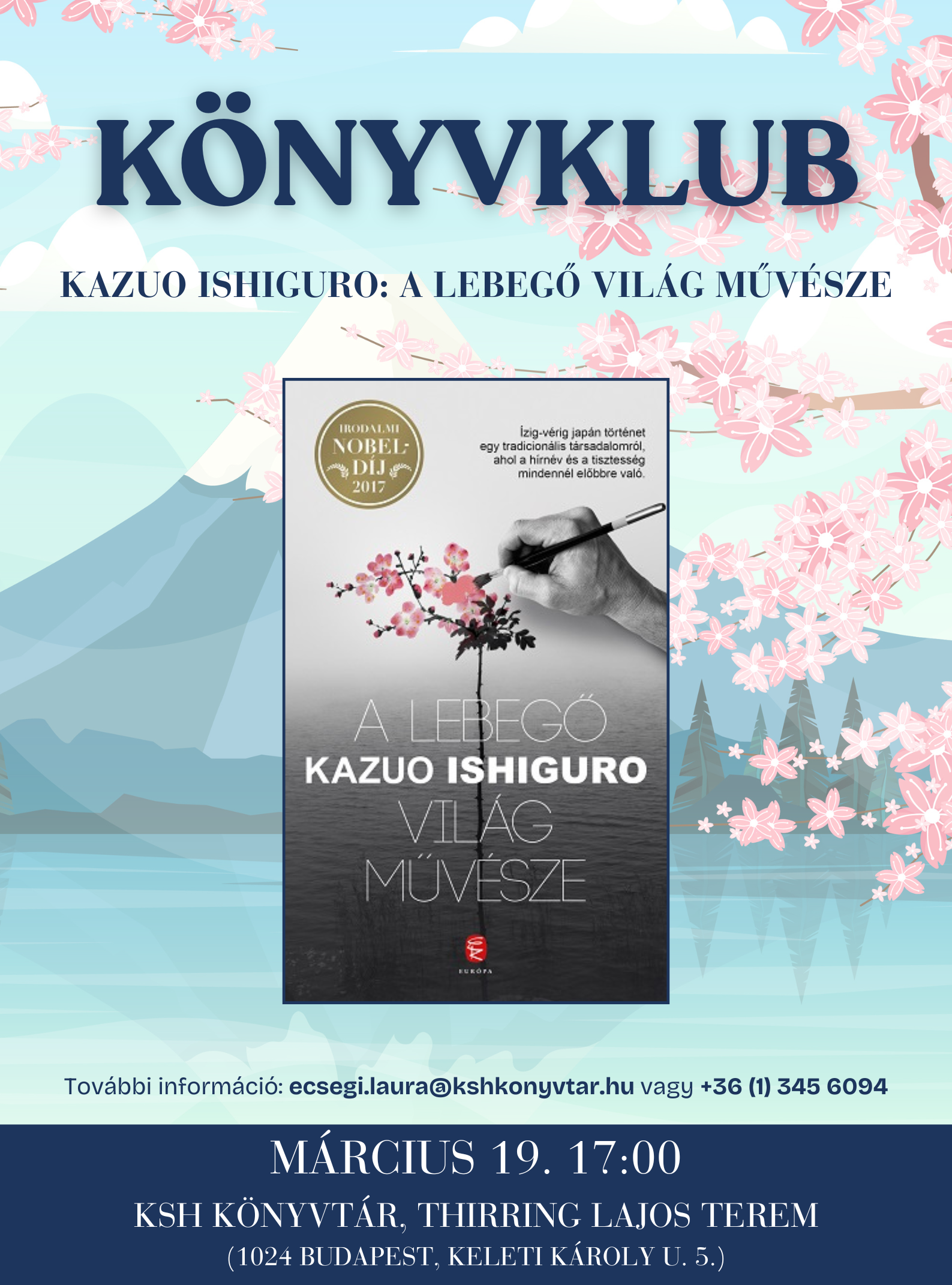 2025. március 19-én 17 órakor folytatódik a Könyvtár könyvklubja, a hónap témája: Kazuo Ishiguro: A lebegő világ művésze.